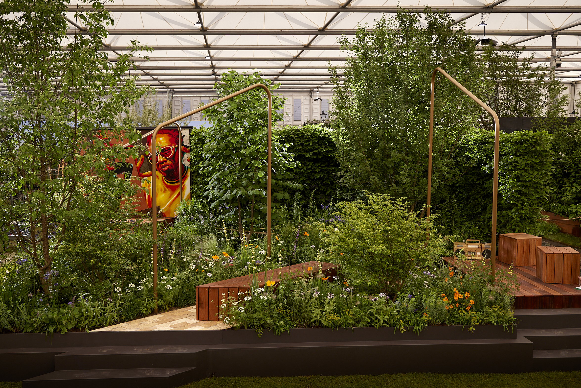 MIMStudios collaborated with garden designer Alexa Ryan Mills to design the Sadler’s Wells East Garden for the world-renowned RHS Chelsea Flower Show. This garden celebrates the next generation of dancers and dance lovers as Sadler’s Wells East prepares to open its new theatre, Hip Hop Theatre Academy, and Choreographic School in East Bank, Queen Elizabeth Olympic Park, in 2024.