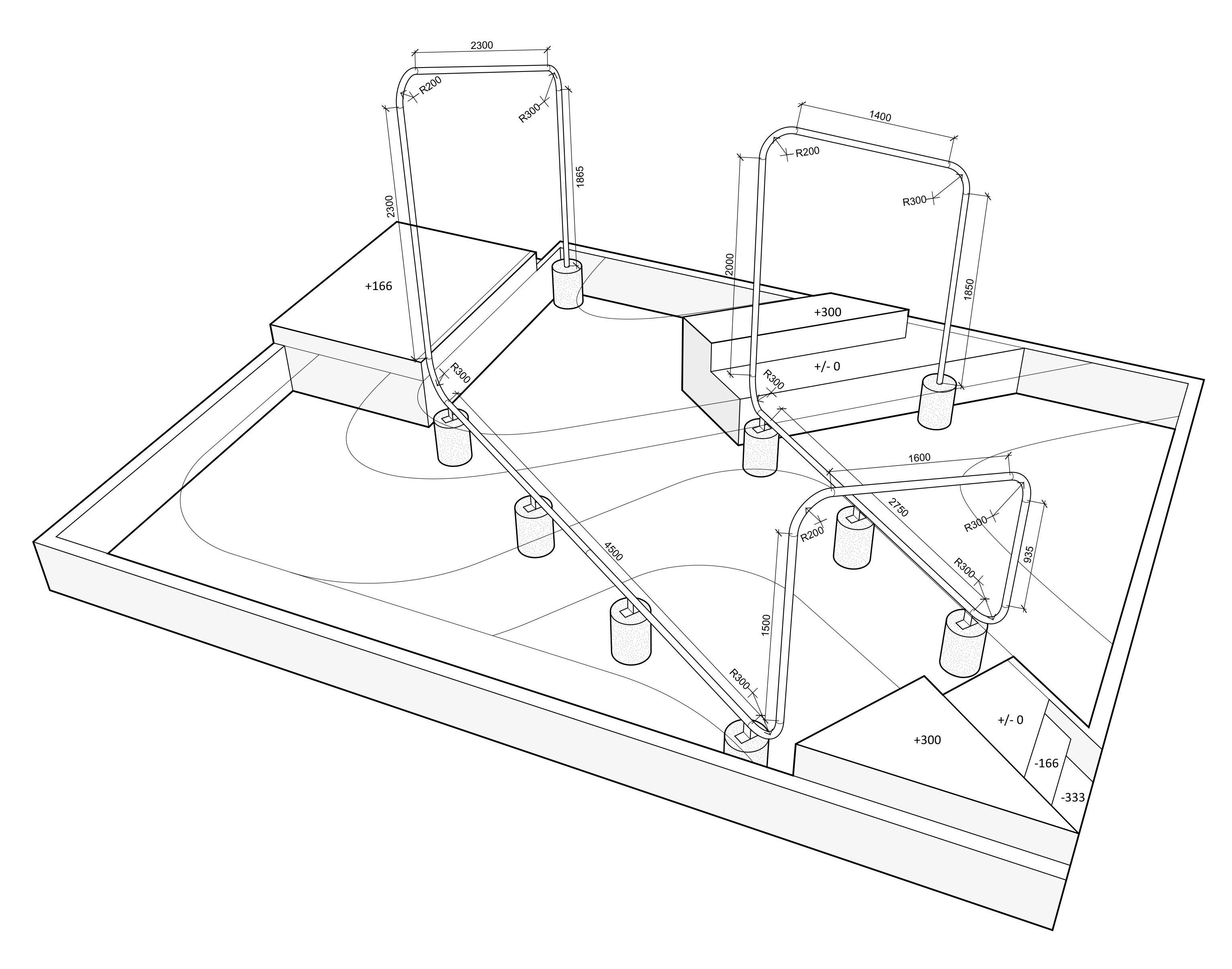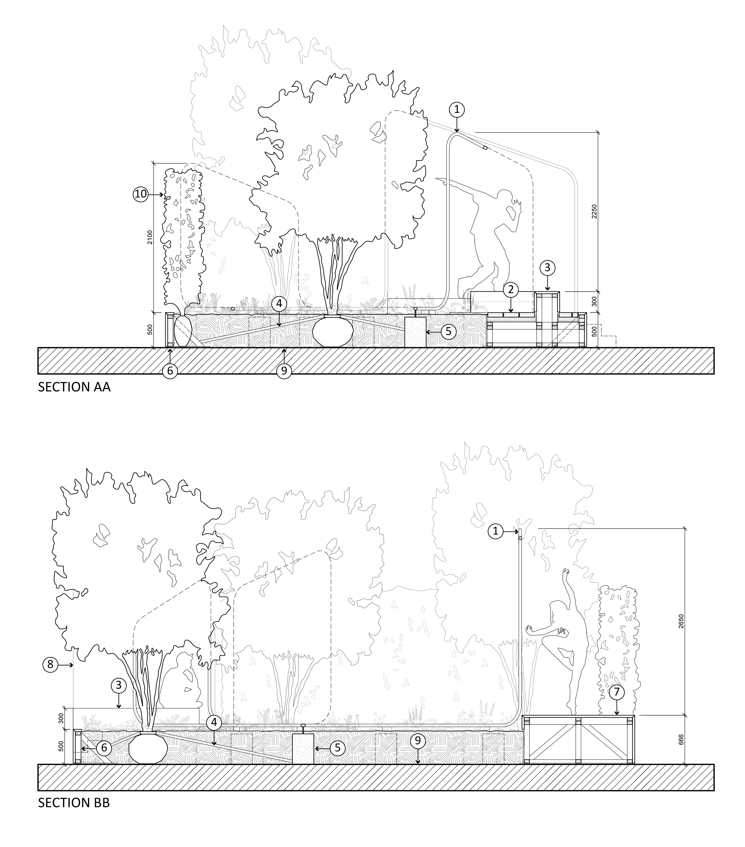 Inspired by the dynamic energy of hip hop dance, the garden design brings a sense of movement and rhythm into the landscape. Our architectural contribution focused on creating a “dancing” saw-toothed steel sculpture that runs through the garden, unifying three protruding stages and framing views into the landscape. As visitors move through the space, the sculpture “dances” along with them, capturing different perspectives and highlighting the vibrant plant arrangements.
