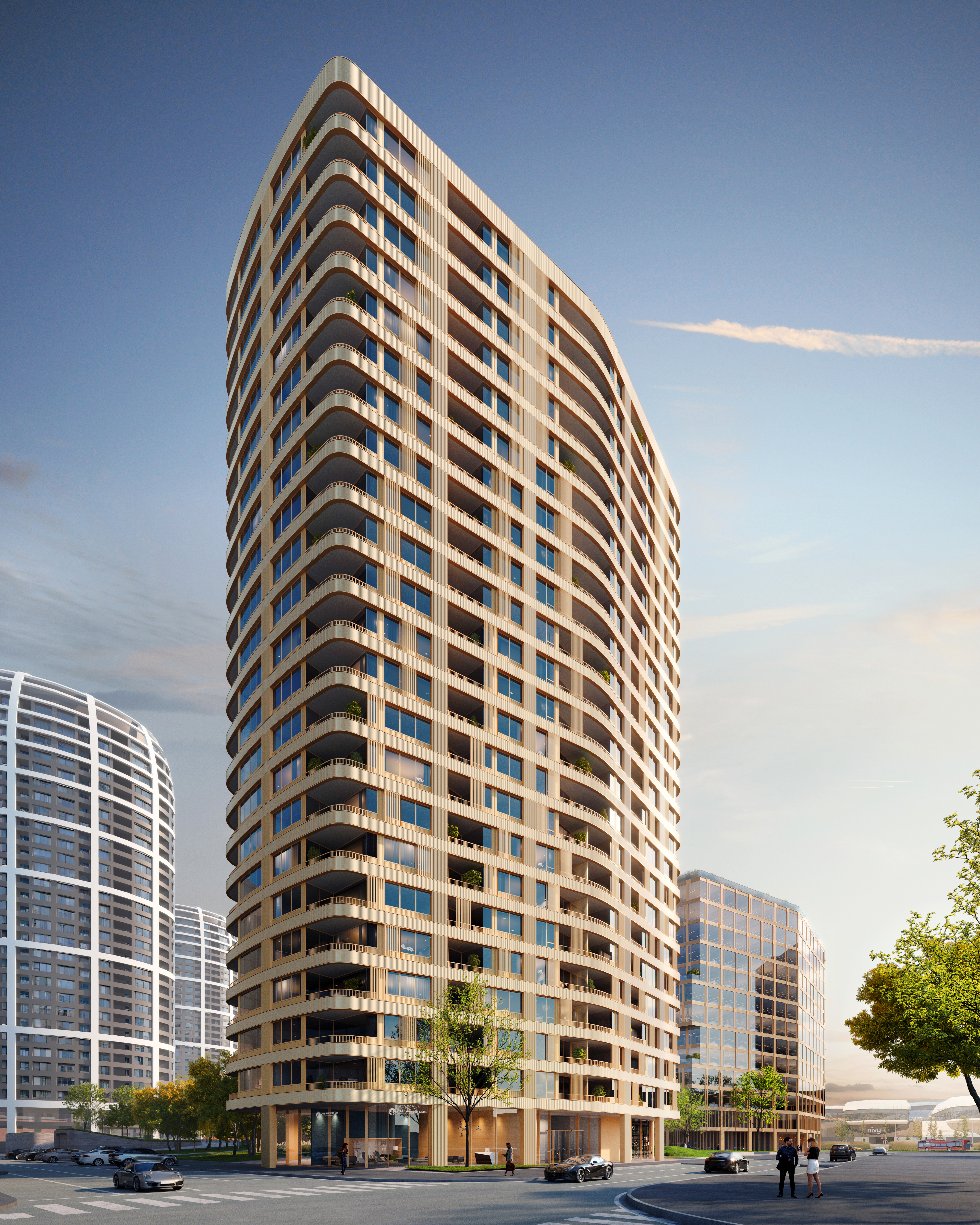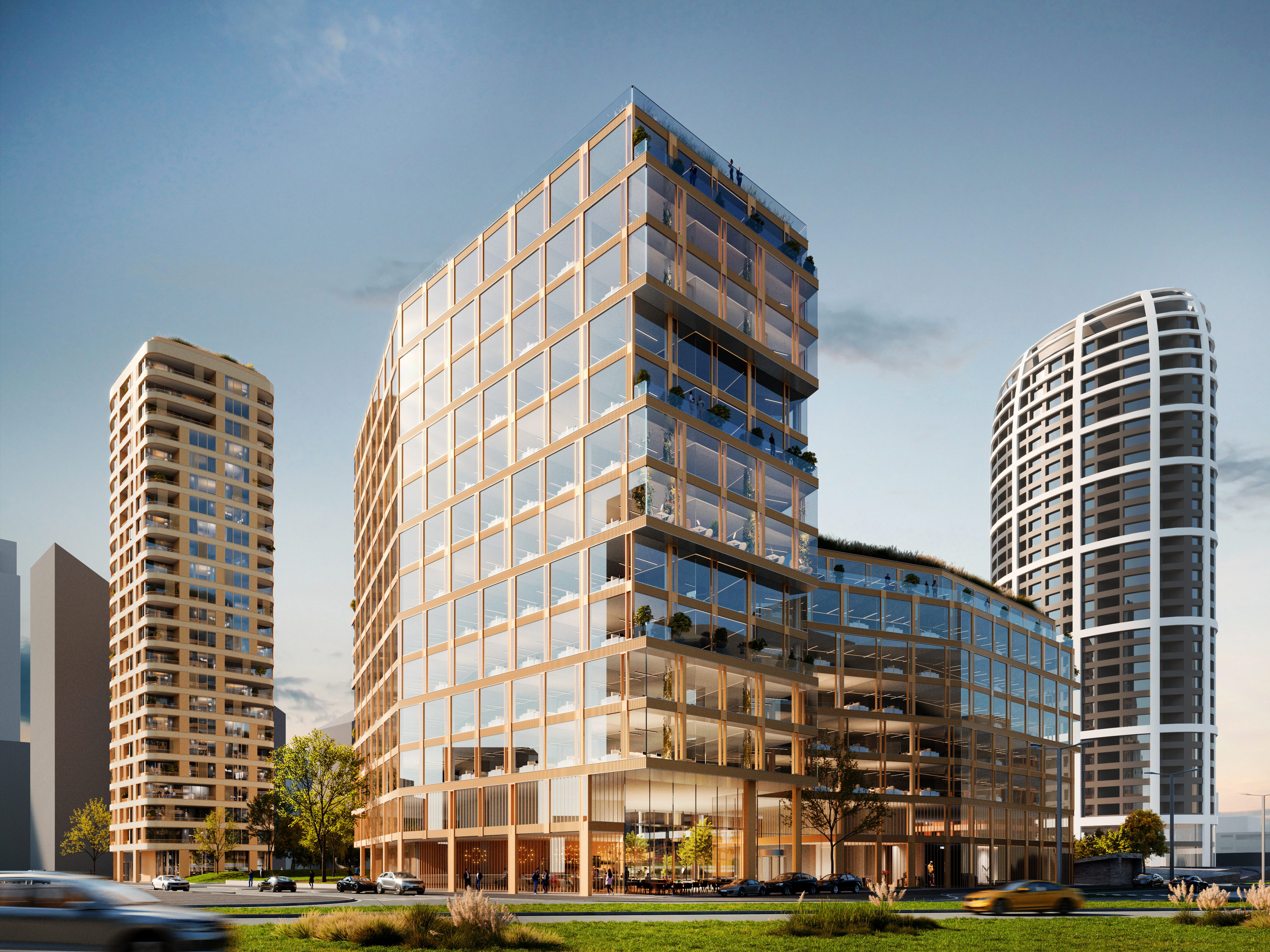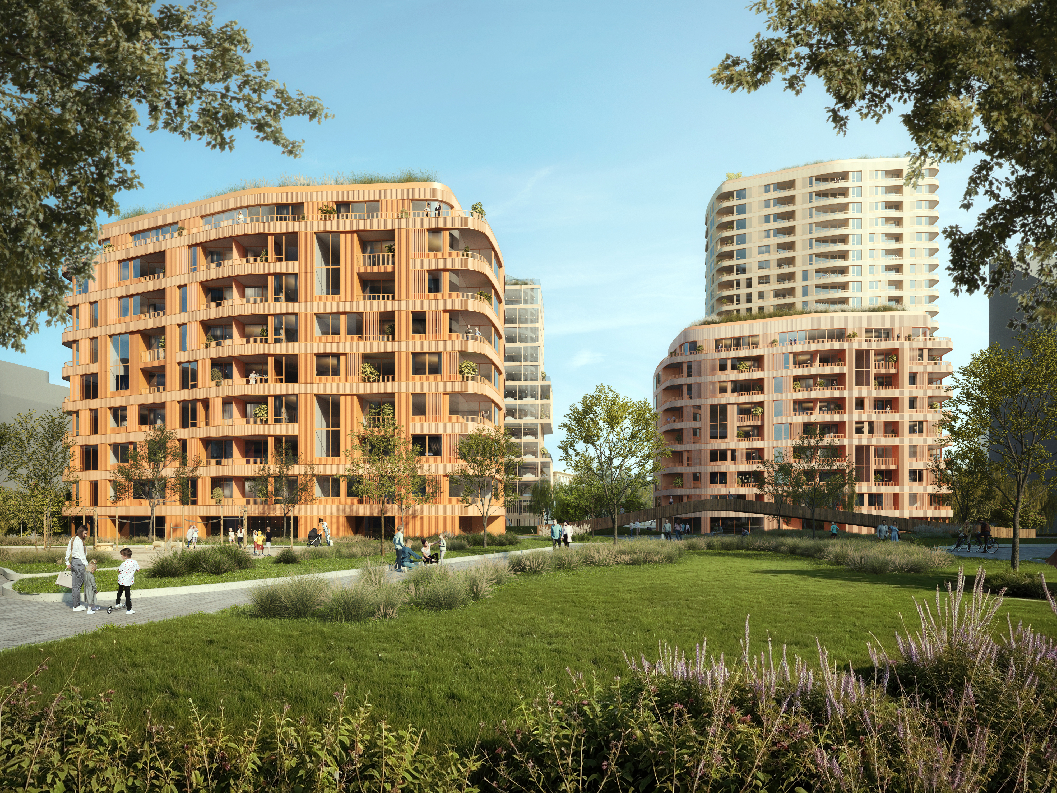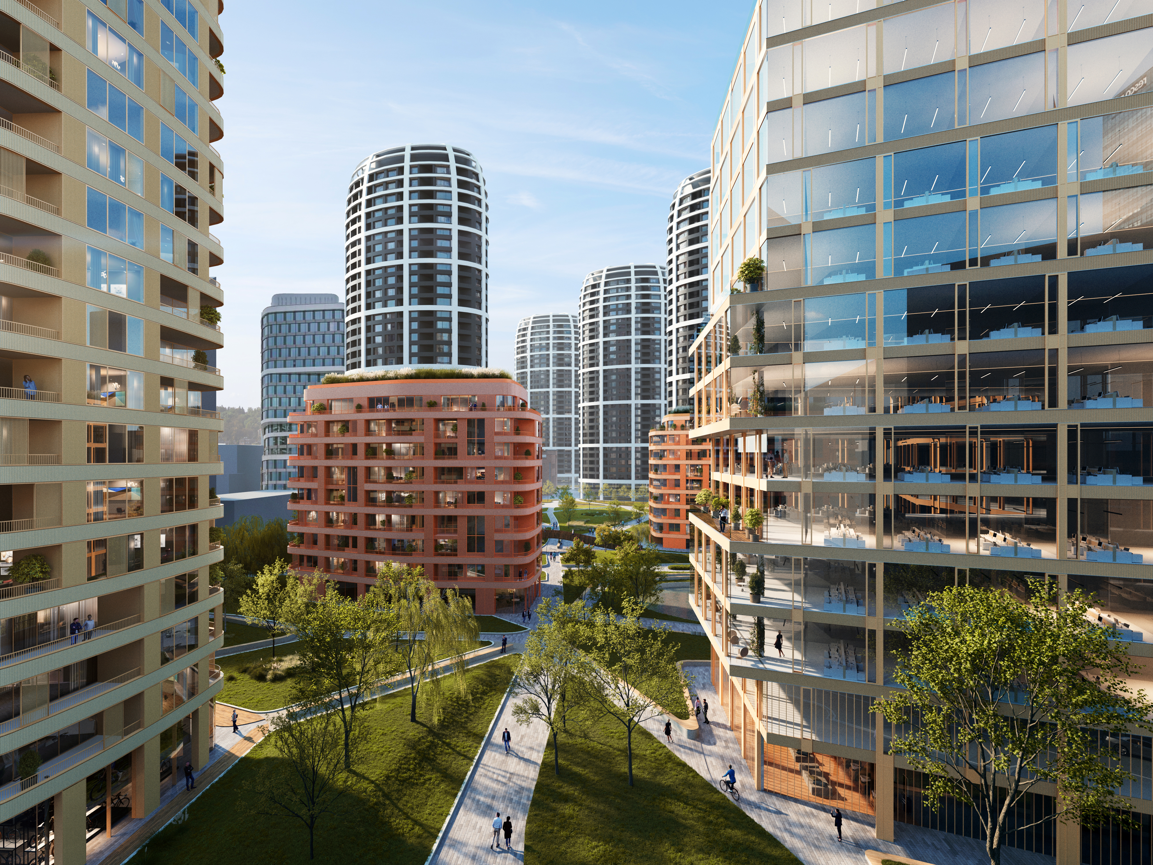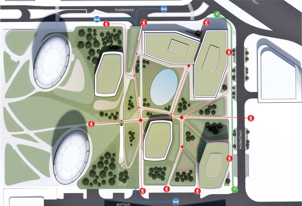 MIMStudios collaborated with Vietzke & Borstelmann Architekten on a mixed-use masterplan design competition in Bratislava. The site is an extension of Bratislava’s Sky-Park, which features residential towers designed by Zaha Hadid Architects and an office tower by Vietzke & Borstelmann Architekten. Our goal was to develop a design that seamlessly extends the neighborhood in the best possible way.
